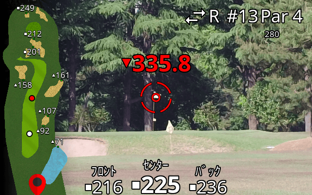 もしGPSで計測表示してあるグリーン奥の距離より長かったら、背後の樹木等を計測していたことになります。