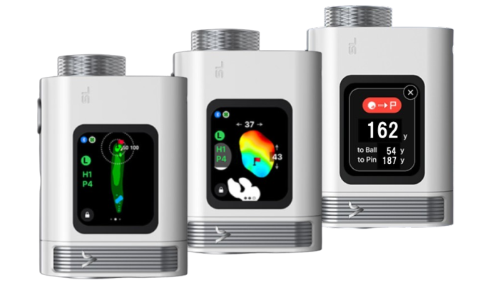 最新モデルの SL mini は外部液晶にコースレイアウト・グリーンアンジュレーションなどを表示して新たなレーザー距離計の形になっています。